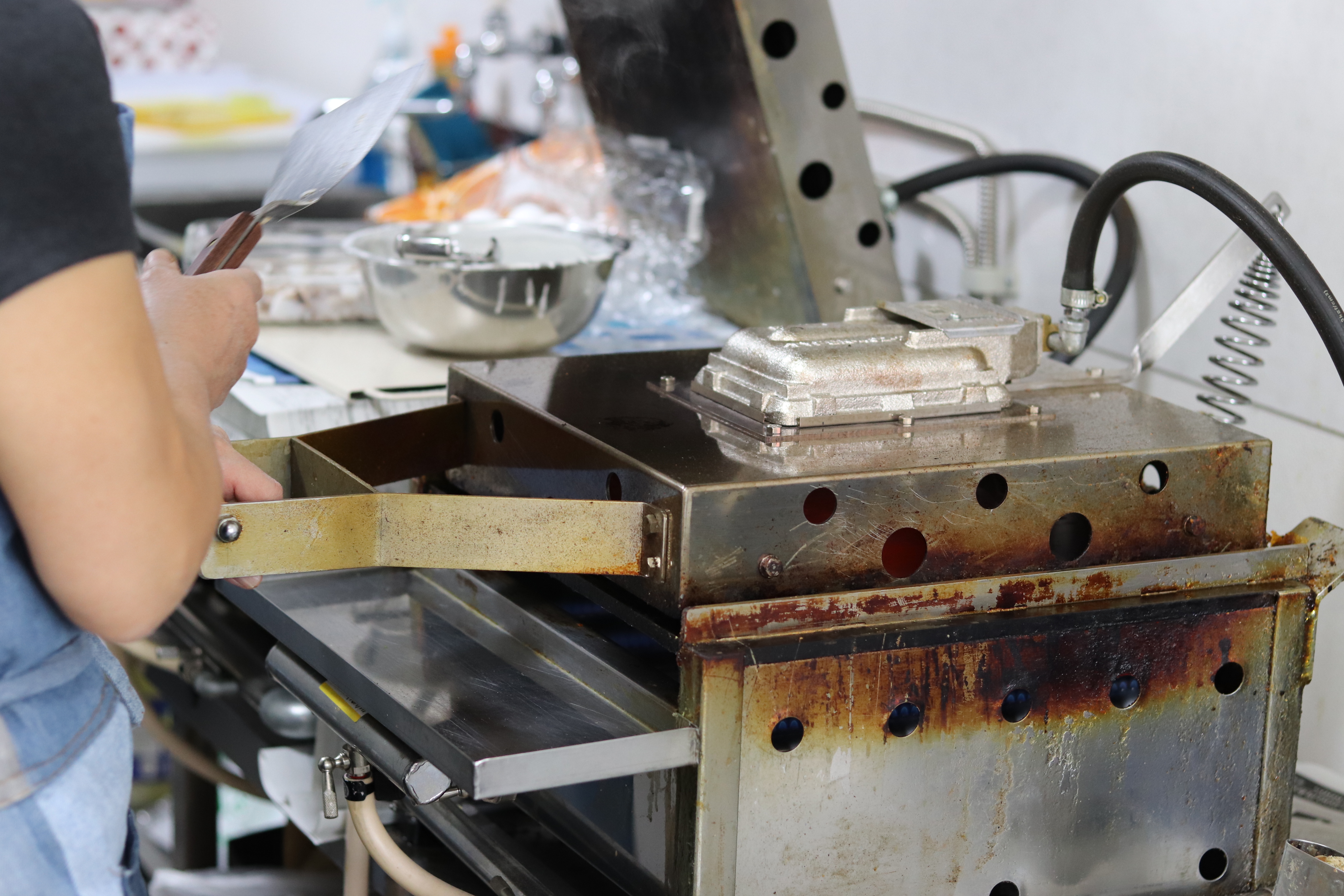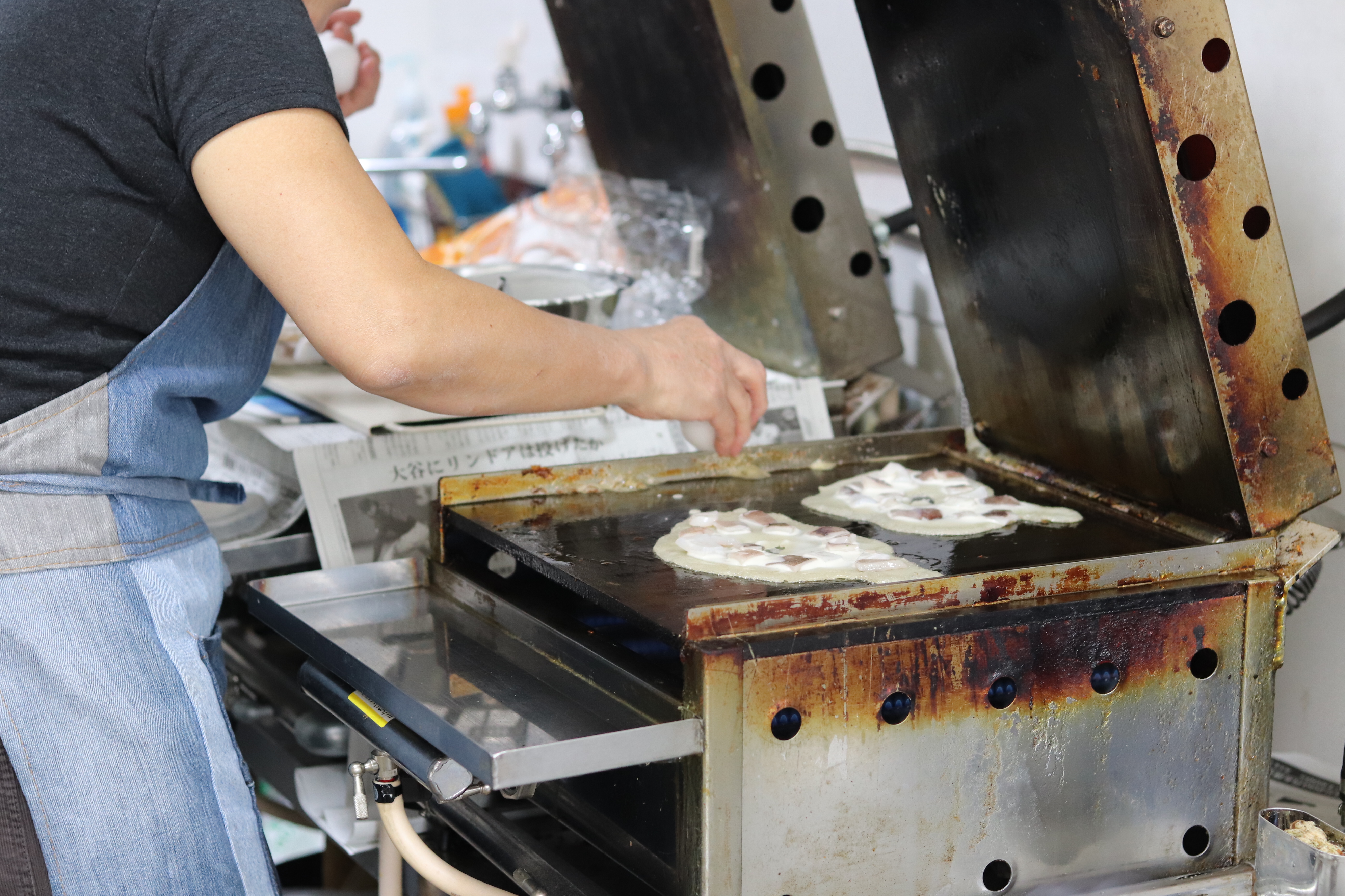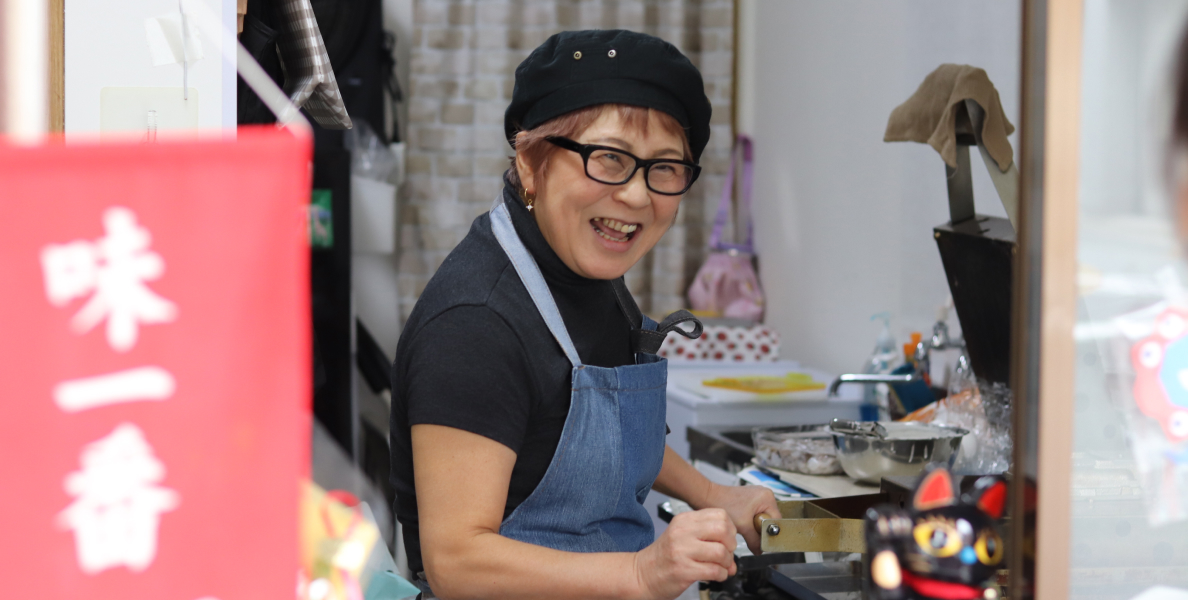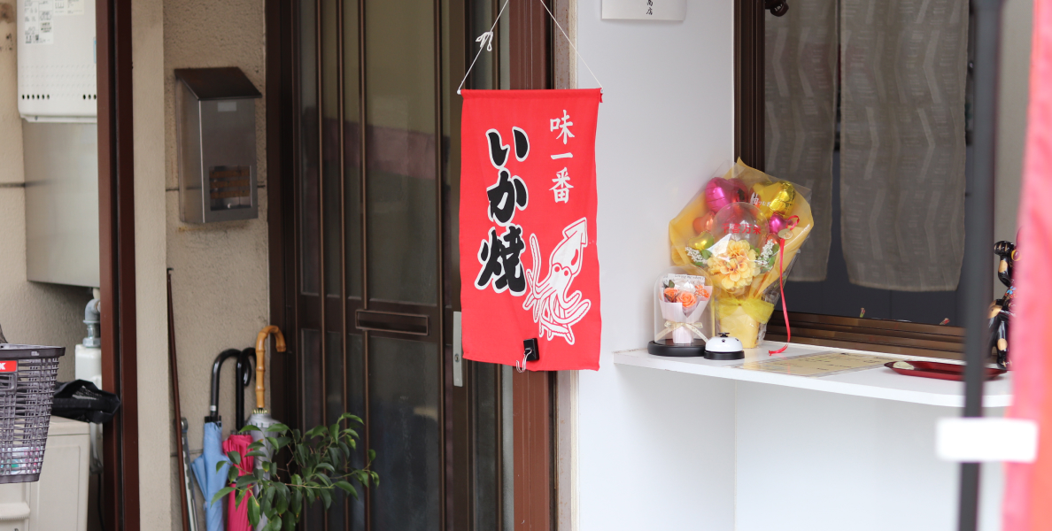 イカ焼き屋さんを始めたきっかけは、家族で力合わせて何かしたいという夢があり、親戚が老舗の粉もん屋さんをやっていて、そこでテレビ取材が来るほどイカ焼き屋さんが有名で作り方など伝授していただきイカ焼き屋さんをすることに。